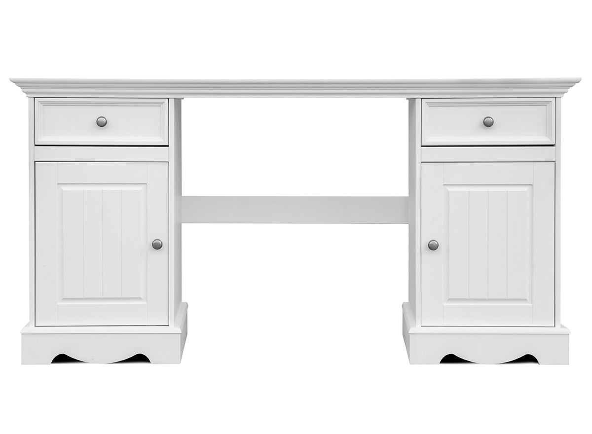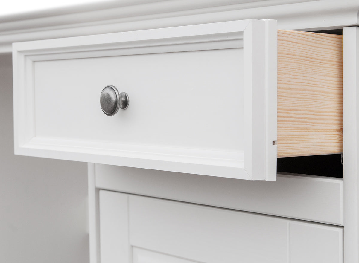 ✔ Dekorative Fräsungen & stilvolle Metallgriffe in Antiksilber – verleiht dem Schreibtisch eine elegante Note