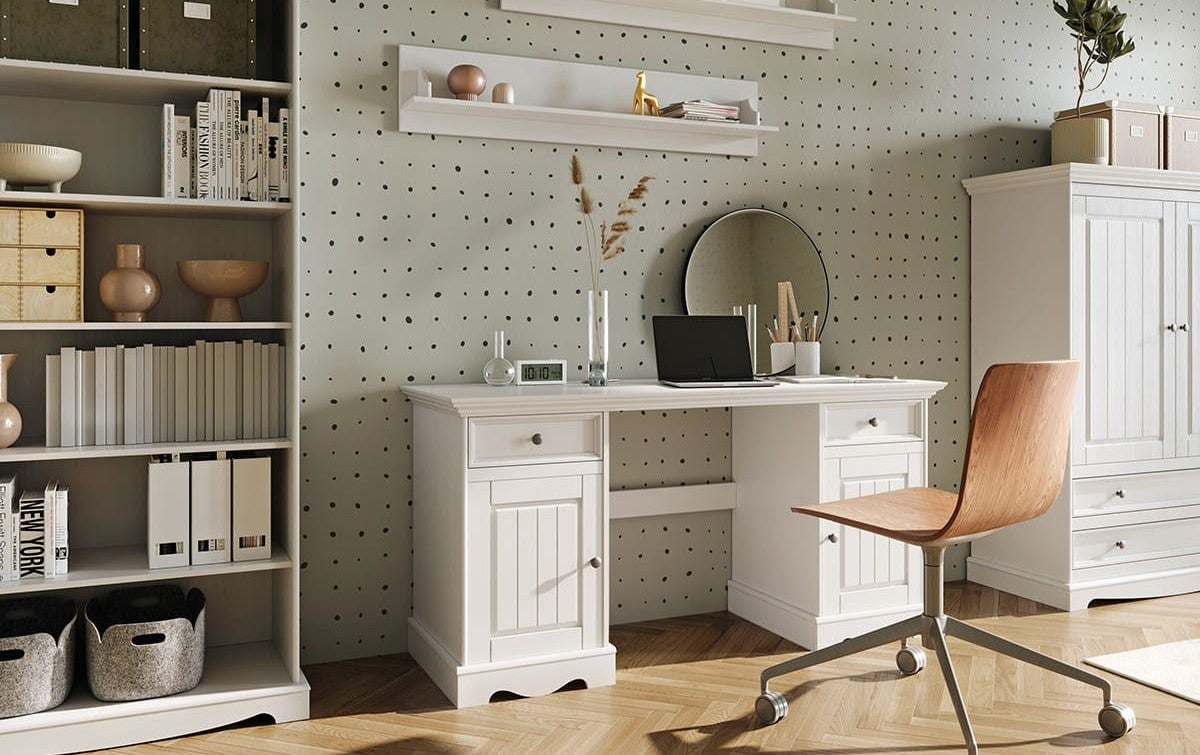 Bologna Elegante Schreibtisch aus weißem Kiefernholz – Stilvoll & Nachhaltig