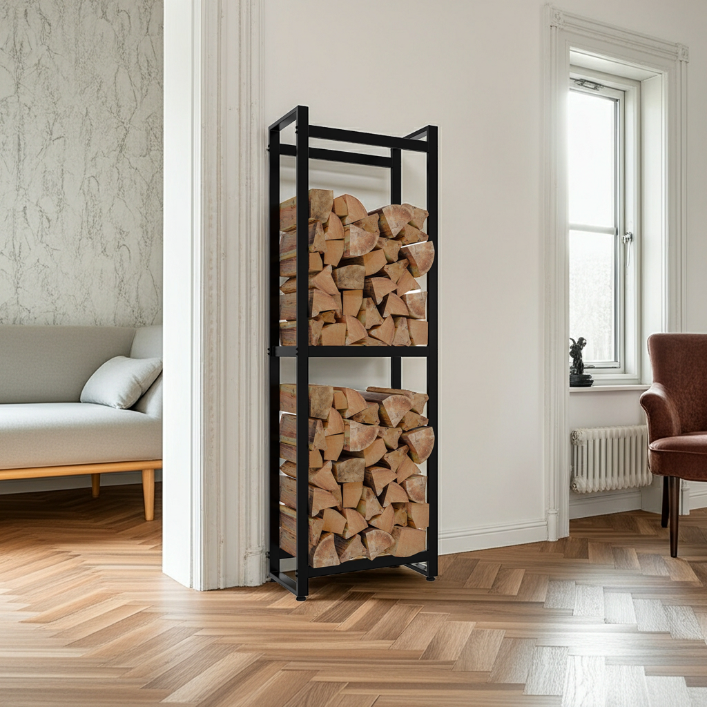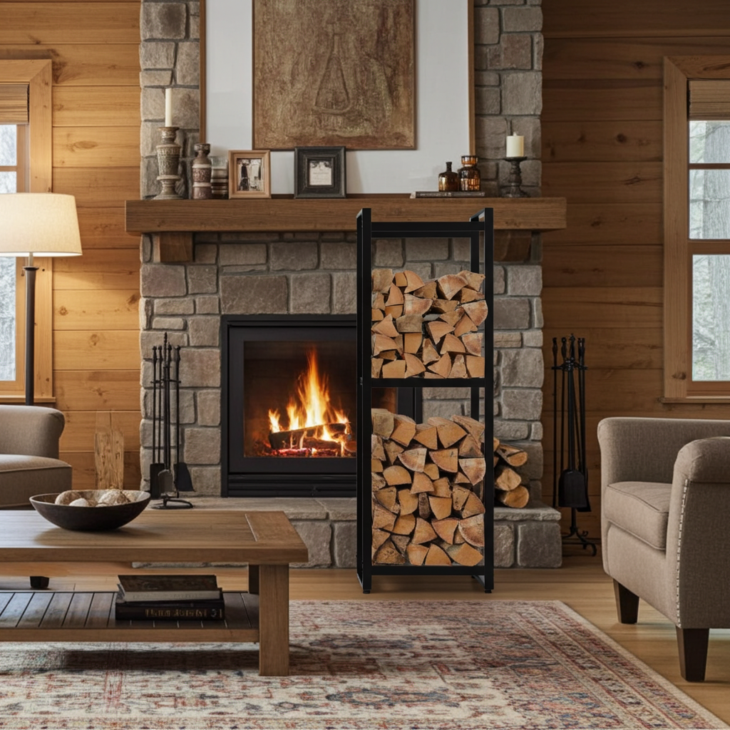 Der Morson Premium Kaminholzständer vereint stilvolles Design mit hoher Funktionalität und ist die perfekte Lösung für die platzsparende und attraktive Aufbewahrung von Kaminholz. Gefertigt aus schwarzem, pulverbeschichtetem Stahl, überzeugt der Ständer durch Stabilität, Langlebigkeit und eine zeitlose Ästhetik, die sich harmonisch in jedes Wohnambiente einfügt.